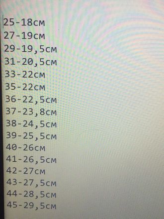 Размерная сетка шитых валенок